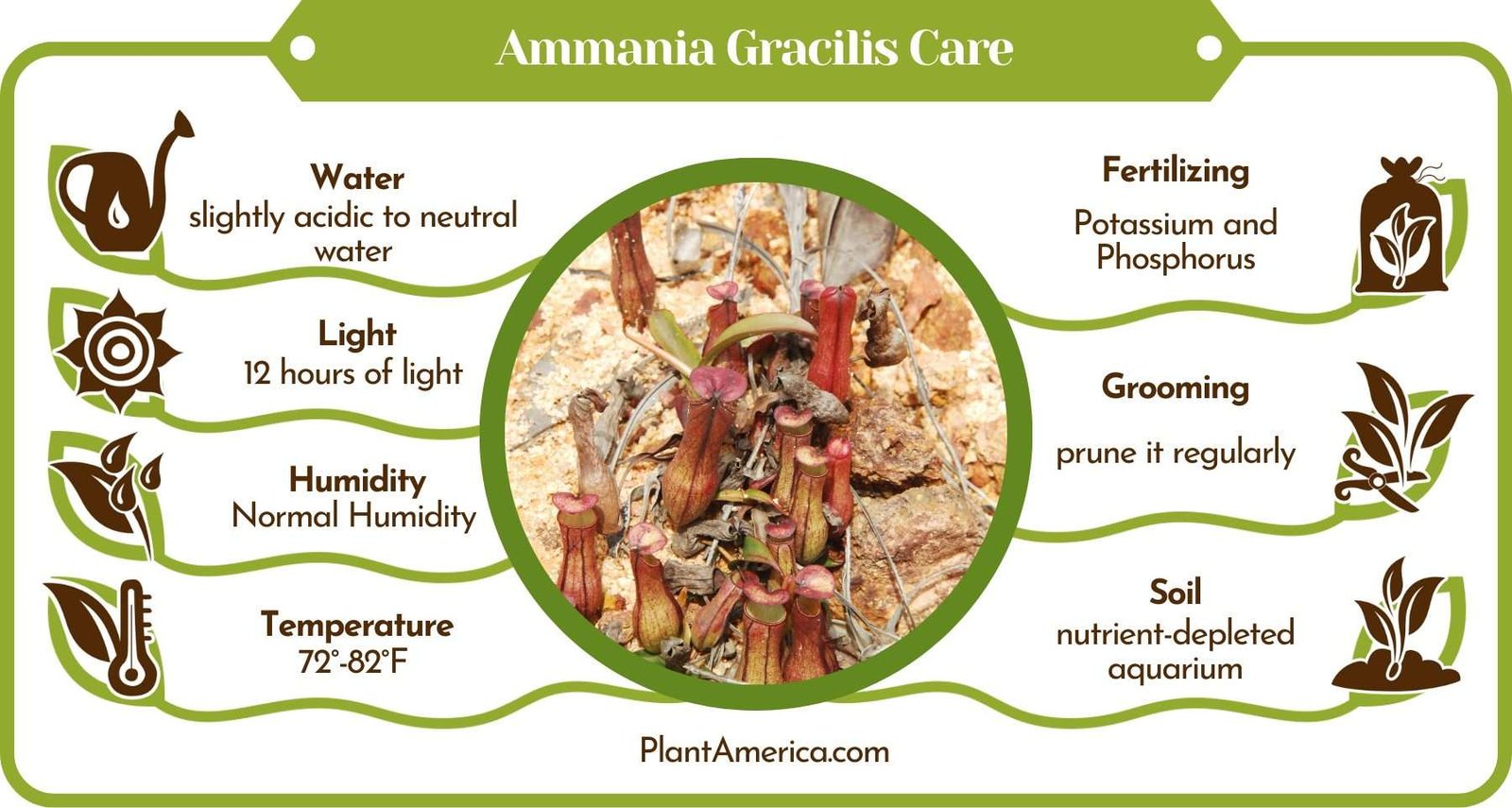 - pH: Ammania gracilis prefers slightly acidic to neutral water. The optimum pH for the plant is 5-7.5.