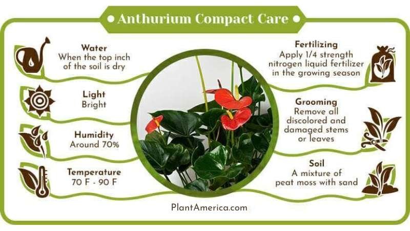 However, this is different with indoor plants as you should make amendments to offer enough humidity to your Anthuriums. The Anthurium Compact loves high humidity so you have to carry out frequent checks on this plant and make adjustments if necessary.