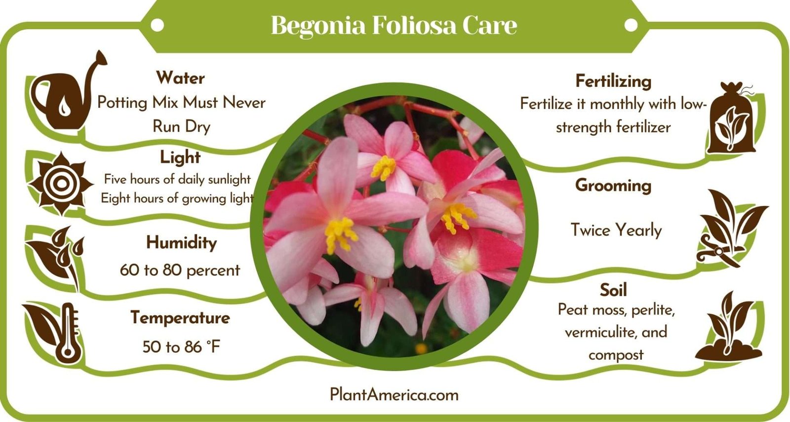 Temperature is more like the most important factor to consider before choosing any plant to grow because every plant has its specific temperature requirements. Plants rely on temperature for so many life processes. As for your begonia foliosa plants, they prefer high temperatures. You should grow the plants at 50 to 86 degrees Fahrenheit.