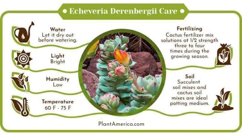 The Echeveria Derenbergii plants normally do not go dormant in their native habitats. When grown outside of their ideal climates, the plant may experience a rest period from growing when exposed to colder temperatures.