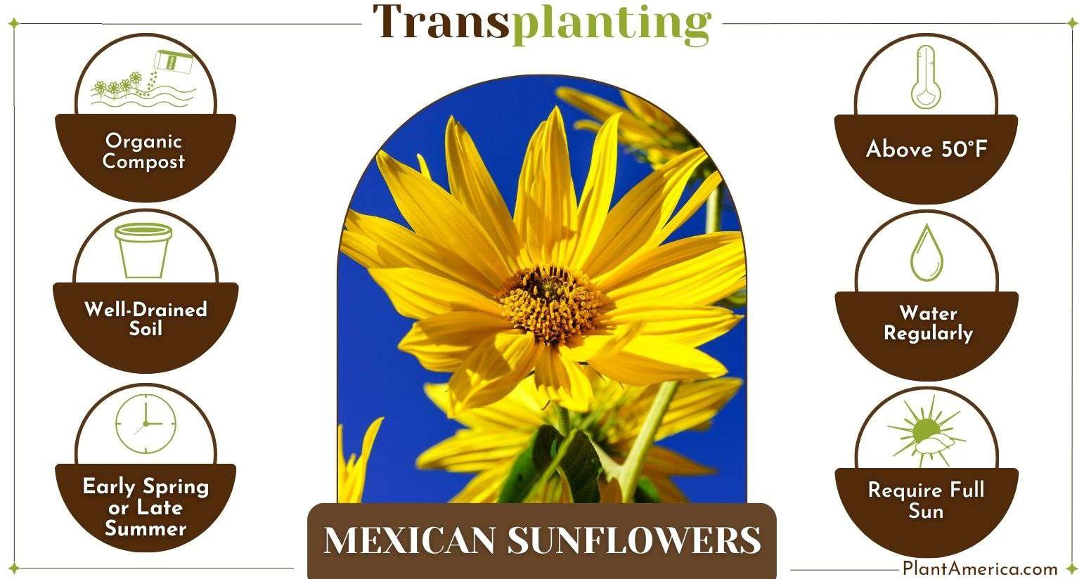 Transplant your Mexican Sunflower during the early spring or late fall when the weather is mild and the risk of frost has passed. Best Time to Transplant Mexican Sunflowers Plant AmericaAvoid transplanting during the scorching summer heat or in the midst of winter cold.