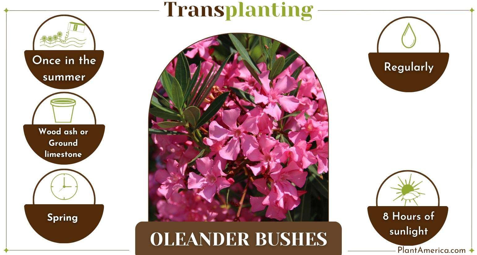 Oleander care in pots or in the garden is suitable for novice gardeners because these plants aren’t that difficult to maintain, yet you might notice some wilting or stunted growth after transplanting. This results from a transplant shock and is quite normal. In the right conditions, the plant can quickly recover and continue to bloom.