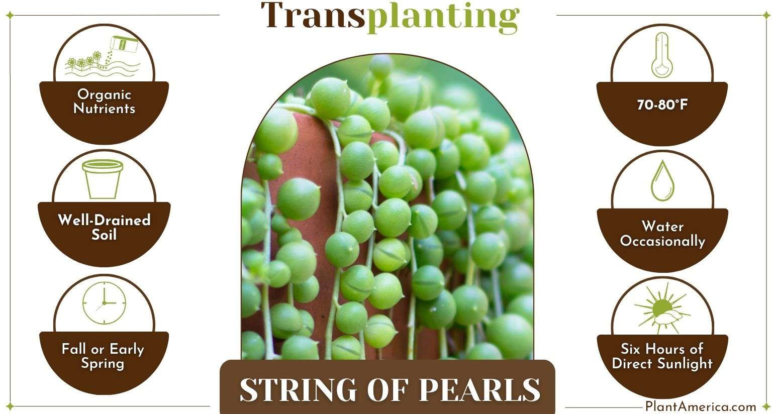 Before transplanting string of pearls, consider their light and temperature needs and check if the new location is suitable. Remember that the plants are succulents and need a special substrate, so ensure that you have everything in place first. Also, transplant your pearls in that dormant period.