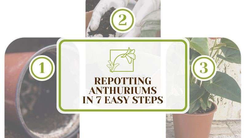 To repot anthurium plants in seven simple steps you have to know when to do so, prepare the new pot and substrate, remove your anthurium, work on the plant and transfer it to its new pot. After you are done you should water it, keep it somewhere cool, and enjoy watching it grow for many years.