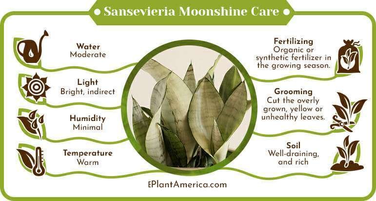 Here is an overview of the Sansevieria moonshine’s care requirements: